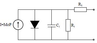 在等效电路中,Rs,Rj和Cj的值如何设置。以S14645-05为例,在增益M=50时,25 ℃ 的温度下。 Cj = 0.95 pF ,Rs = 3 Ω,Rj = 2G Ω 。由于结电容等数值与温度、反向偏压相关,所以增益和工作电压需要确定后才可以得到参考数值。