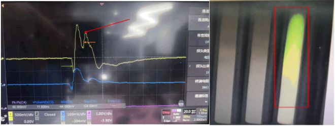 APD的饱和脉冲波形,从产生的原理上分析是由于等效串联电阻的阻值变化引起的。在有电流流过时,等效串联电阻的阻值上升,使加在APD上的Vr值下降,之后电流下降Vr值又升高。这种变化的串联电阻现象有可能是芯片背侧没有完全接触导致。
