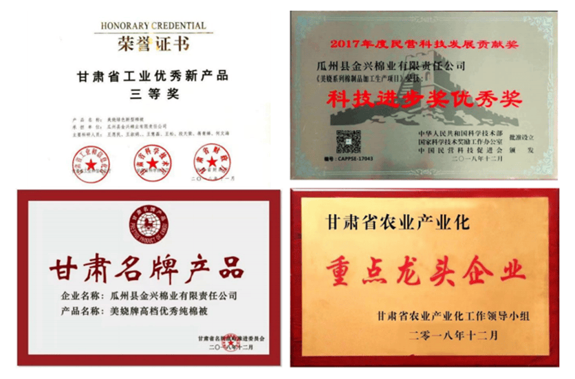 2015年10月,金兴棉业入编由国家质量监督检验检疫总局主管的《中国质量技术监督》杂志,并成为“全国产品质量稳定合格知名品牌”;同年12月,荣获由中国国际经济技术合作促进会颁发的“中国绿色产业示范基地”证书。王愿民先后被评选为中国企业发展促进会理事、北京民营经济发展促进会副会长、中国爱心事业联合会副会长,荣获2015年度诚信企业家称号等。
