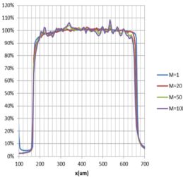 所以,目前滨松量产的APD型号,边缘与中心区域的增益基本没有差别。在边沿10um处有些许增益下降情况,但是边缘处的下降原因是由于测试的光斑无法再继续减小光斑尺寸,有部分光已打在感光面外面所致,此现象在M=1时的图中较为明显。