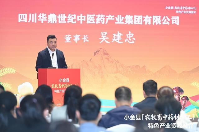 作为中医药领域的创新型民营企业代表,四川华鼎世纪中医药产业集团有限公司已在全国28个省(自治区、直辖市)布局超过1800多个农副产品中草药购销站。在本次活动上,董事长吴建忠作为投资企业代表发言时表示:“我们非常看好小金县的中药材资源价值,计划与小金县鑫鑫农业签订长期合作协议,把华鼎‘种植、生产、流通、仓储、电商’五个标准化体系落地小金,让小金药材既‘生态优’又 ‘品质硬’,通过全国渠道走进药房、康养机构,让‘小金道地’成为‘市场爆款’。”