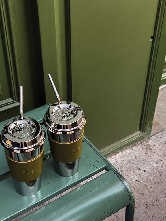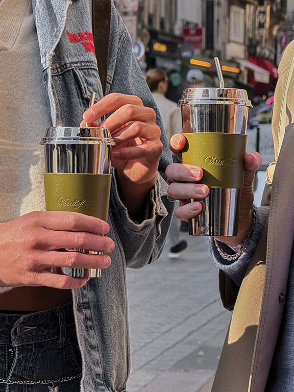 这只杯子映照着文化与优雅。杯身的镜面折射光影,而植鞣皮革杯套则承载了历史的重量。杯盖上浮雕的家族纹章象征为法兰西王室服务的两只蜜蜂,环绕“OC”字母的三颗星并非炫耀,而是提醒着即便是日常饮啜,亦可连接百年银艺的传承。双层结构精妙平衡了温度,柔和皮革则体贴了手感,令每一次举杯都成为细腻的感官体验。吸管、皮环与清洁刷均可替换,这延续了 Christofle 对可持续与长期主义的承诺。